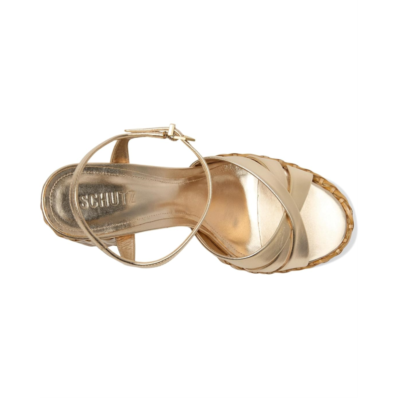 - The Schutz Keefa Straw sandal boasts a high platform sole wrapped in natural straw. With a premium leather upper construction, these block heel sandals stand out with their unique texture and charm.