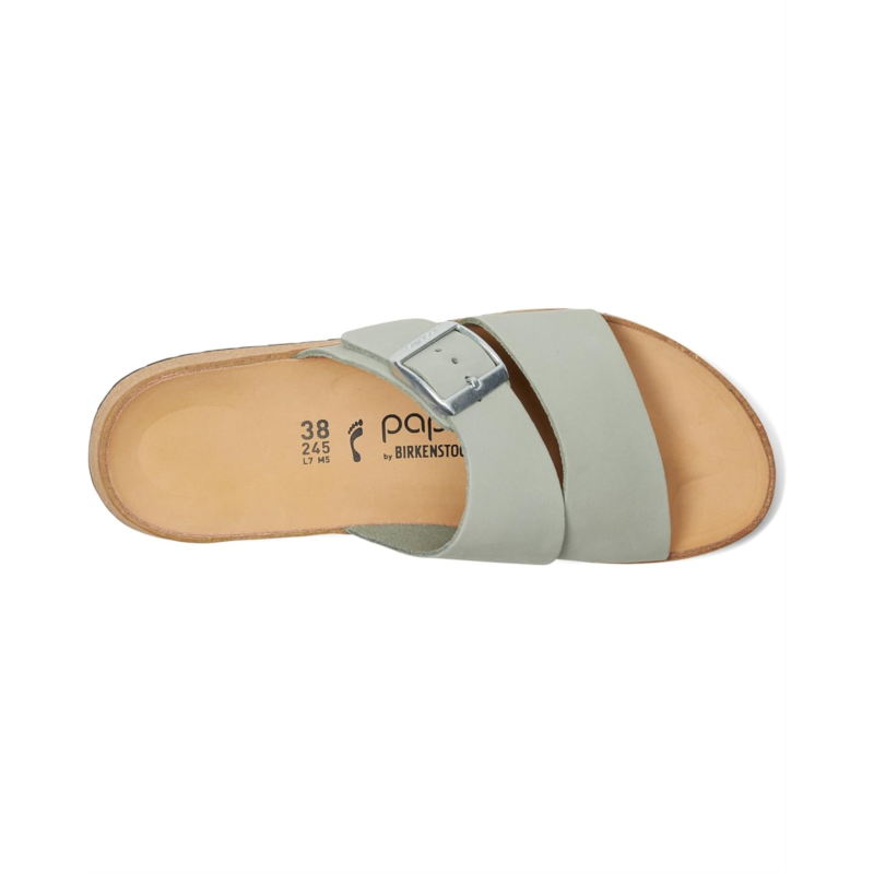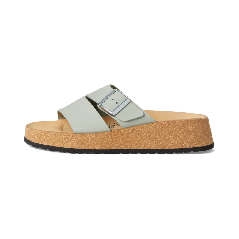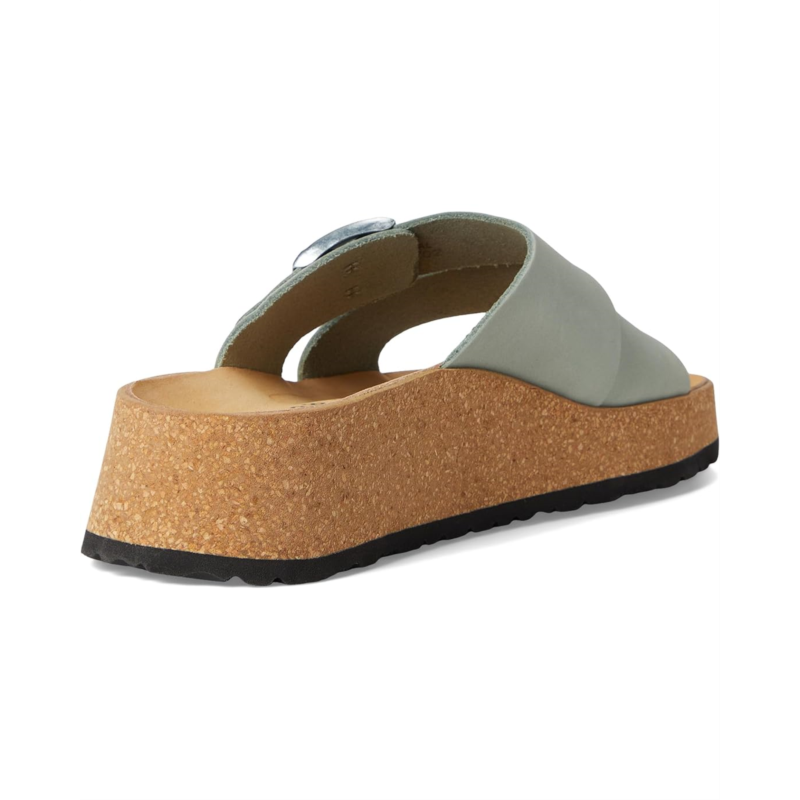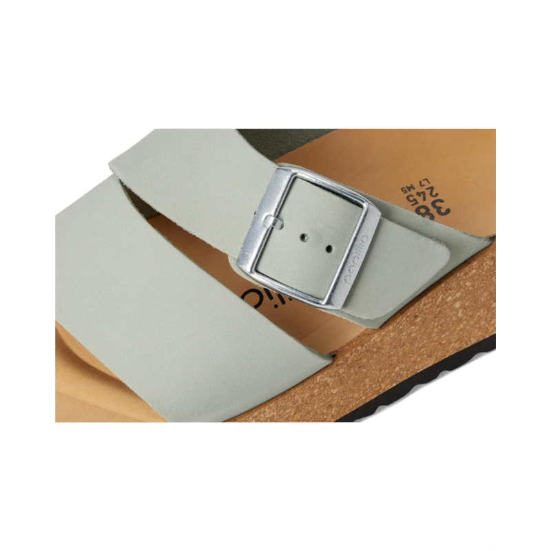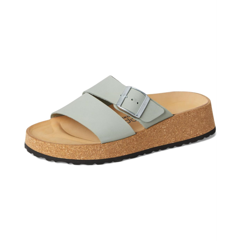 - A new wedge from Papillio by Birkenstock, Almina Platform Sandal - Nubuck. Featuring contoured cork footbed that provides long-lasting comfort, brand detailing on the footbed, and open round toe design.