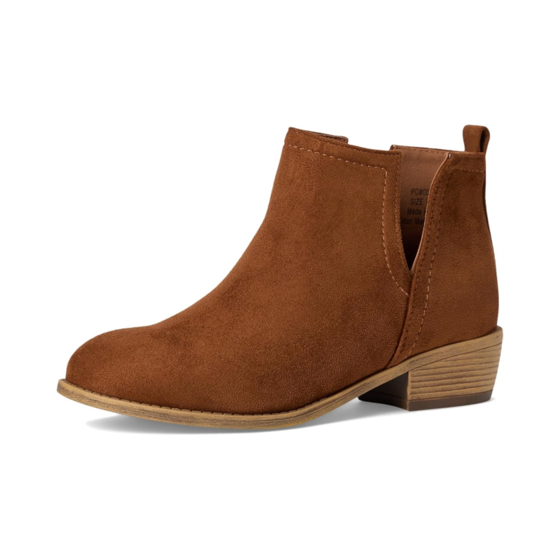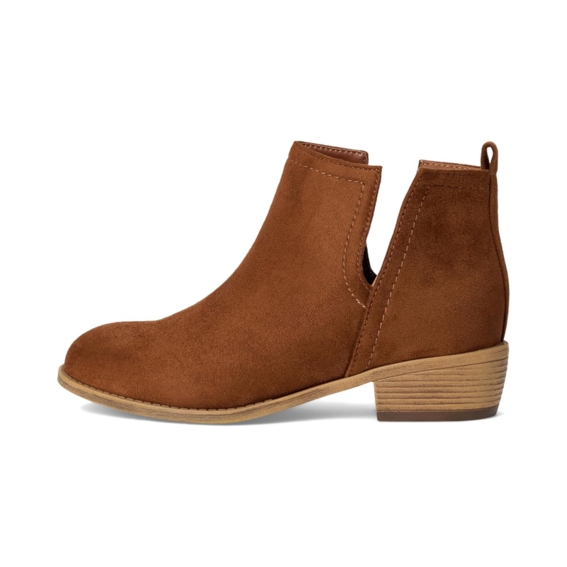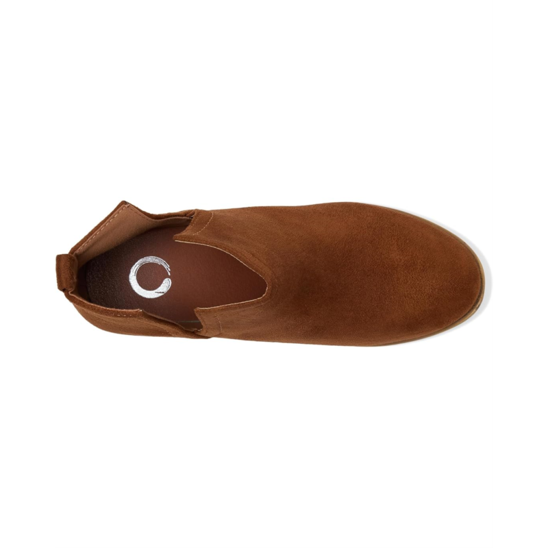 - The Journee Collection Rimi Bootie sports a low-profile with a leather upper, V-side vents, pull-on construction, and stacked heel.