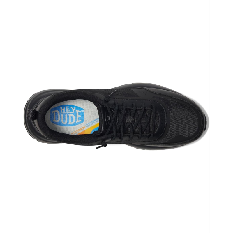 - The Hey Dude Sirocco Alta Work CE is ready to conquer your workday. Featuring a water-repellent mesh upper that cushions your foot with every step, it boasts easy-to-clean materials and slip-resistant tread so you can win the workday. Now fully CE certified. The elasticized lace-up closure allows for easy on and off, ensuring a hassle-free experience. These shoes are designed to prioritize your comfort, featuring a removable foam insole that provides cushioning and support.