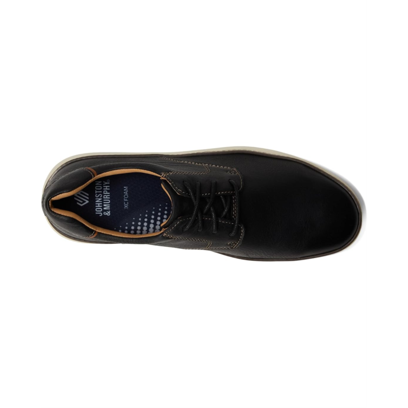 - Made of a padded tongue, collar, and heel, the Johnston & Murphy Mcguffey 2 Plain Toe shoes pair perfectly with most outfits and styles. The full-grain leather upper features a lace-up closure for a secure fit. They are designed with a leather and textile lining and high-rebound, ultra-comfortable XC Foam footbed and midsole for added comfort.