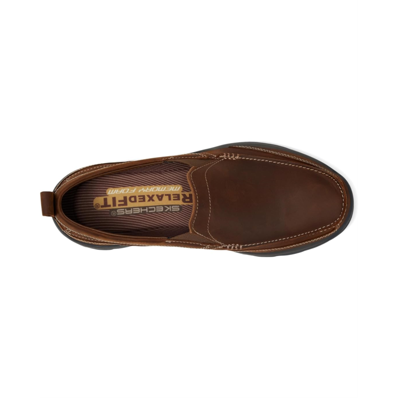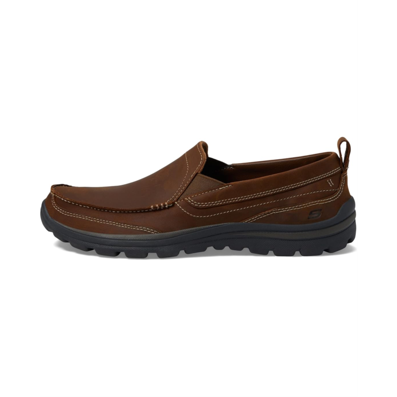 - The SKECHERS Relaxed Fit Superior - Gains loafer fuses comfort and style with a mixed finish design, contrast topstitching, and optimal comfort features.