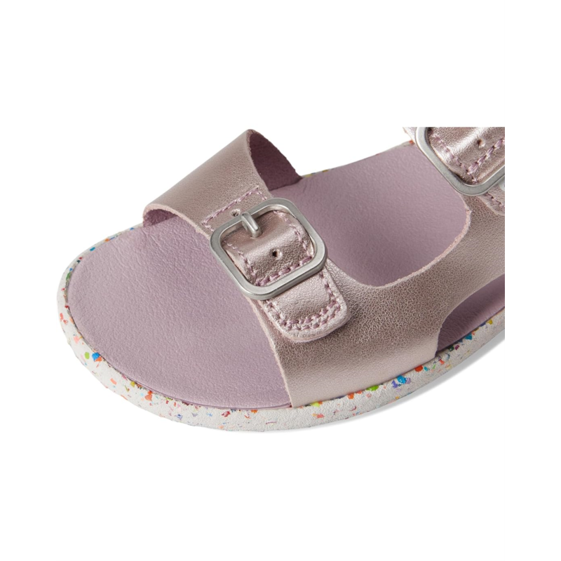 - Lightweight man-made footbed cups the foot to offer a natural shape for proper development.