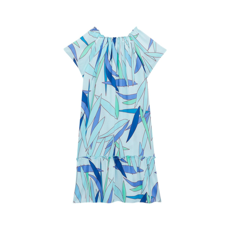 - Fashioned from viscose to keep you cool on hot summer days and featuring micro-cut sleeves, the Vilebrequin Kids Cotton Voile Dress Madrague Dress is a must-have in your wardrobe. The pull-on style dress features a crew neck, an allover tropical leaf print, and a flounce hem.