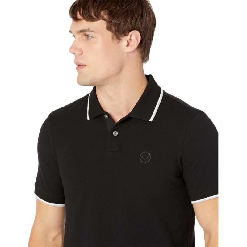 - Elevate your look by wearing the Armani Exchange Slim Fit Pique Logo Polo T-shirt.