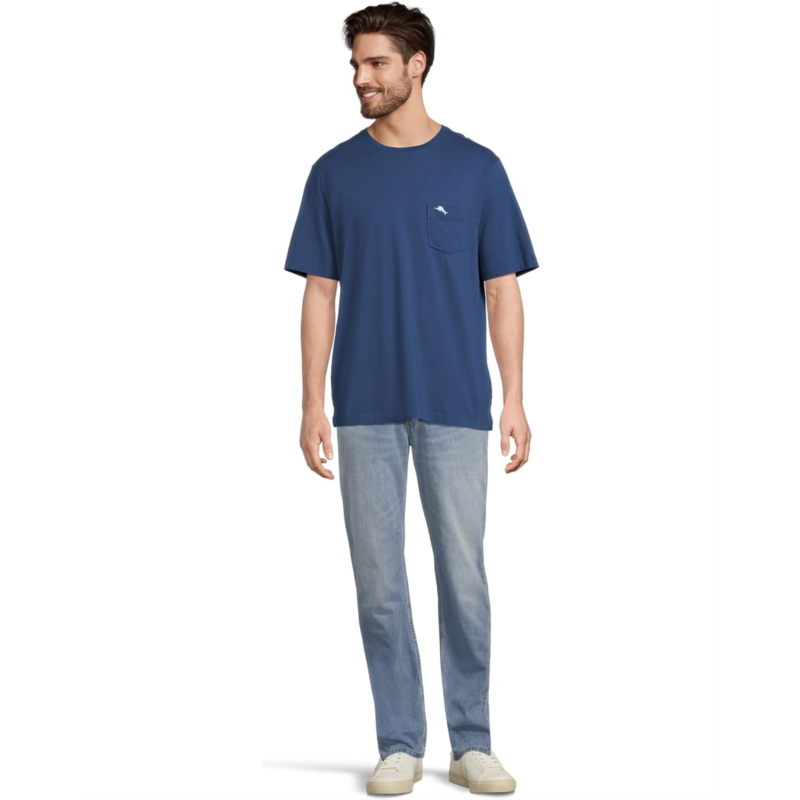 - Elevate your beach vacation look wearing the cool and comfy Tommy Bahama New Bali Skyline Tee. Made from soft material, this classic fit T-shirt features round neckline, short sleeves, pocket on the left chest with brand logo embroidery, accent inside neck taping and straight hem.