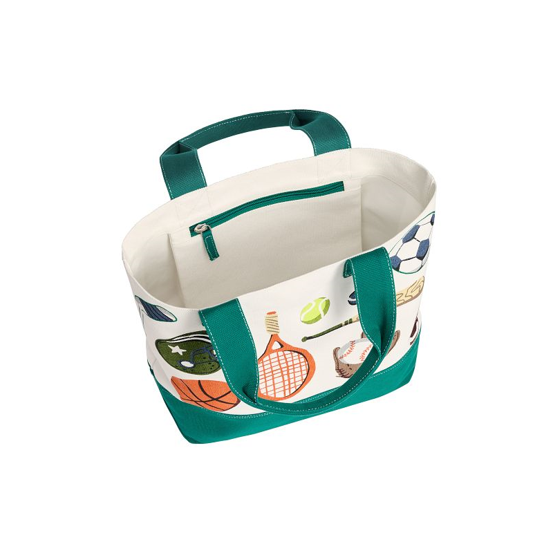 A winning choice for swim day, this set pairs a durable tote and reversible towel featuring iconic gear for their favorite sports. Backed in coordinating cabana stripes, the cotton terry velour towel offers cozy softness, superior absorbency and handy UPF 50+ protection. Stash it in the matching water-resistant canvas tote, and you’re ready for park, pool or picnic.
