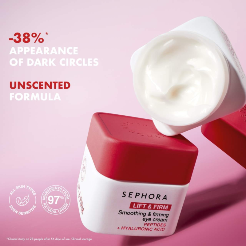 What Else You Need to Know: This smoothing and firming eye cream, enriched with peptides and hyaluronic acid, should be used in the morning and evening for luminous, fresh, and younger-looking eyes. The anti-aging properties work together to diminish the three main signs of aging: dark circles, fine lines and wrinkles around the eyes, and firmness.