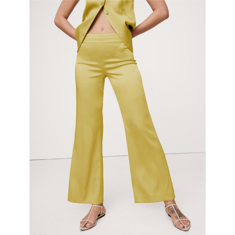 - Things we love about these pants: the kick-flare silhouette, the satin fabric, and the hidden elastic at the back waist for a custom fit. Make it a set with the matching vest.