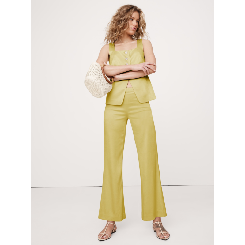 - Things we love about these pants: the kick-flare silhouette, the satin fabric, and the hidden elastic at the back waist for a custom fit. Make it a set with the matching vest.