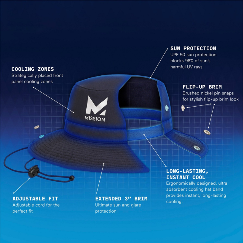 Keep the sun out with the MISSION Adults'' Instant Cooling Laser Cut Performance Hat. Crafted with polyester and spandex material, this hat provides a soft, comfortable feel, while the cooling technology promotes breathability. The embroidered MISSION branding delivers a stylish look. Cooling technology promotes breathability
