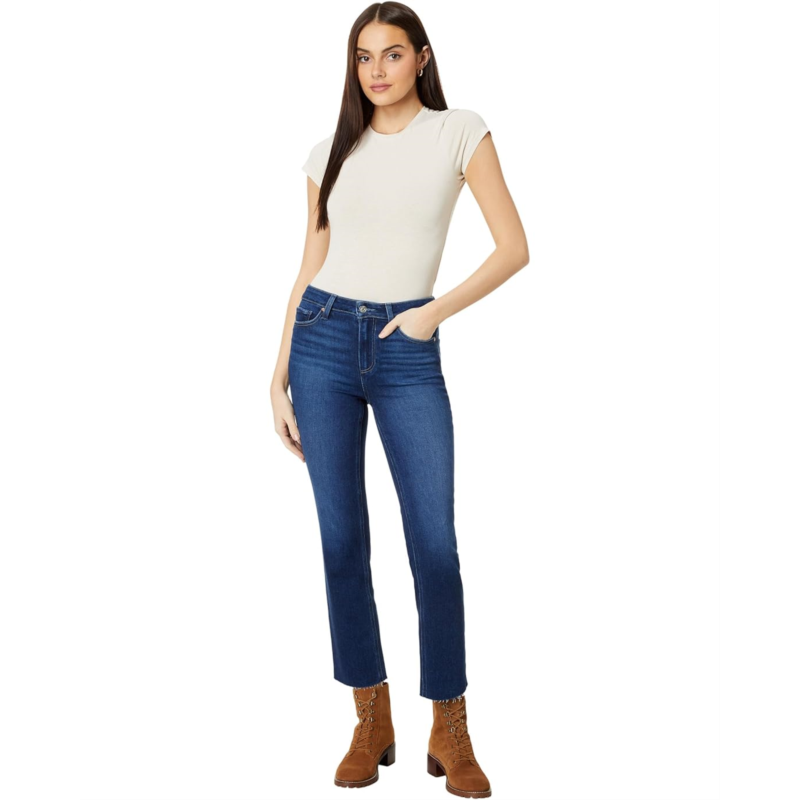 - Designed with a flattering high-rise waist and a regular fit, the Paige Cindy Raw Hem jeans offer a comfortable and stylish option for everyday wear. The natural fading and classic lived-in details add a touch of character. The straight-leg style jeans are made from stretchable fabric that provides a flexible and accommodating fit, ensuring comfort throughout the day.