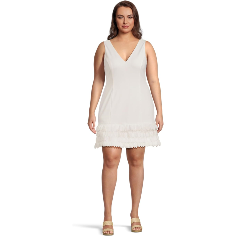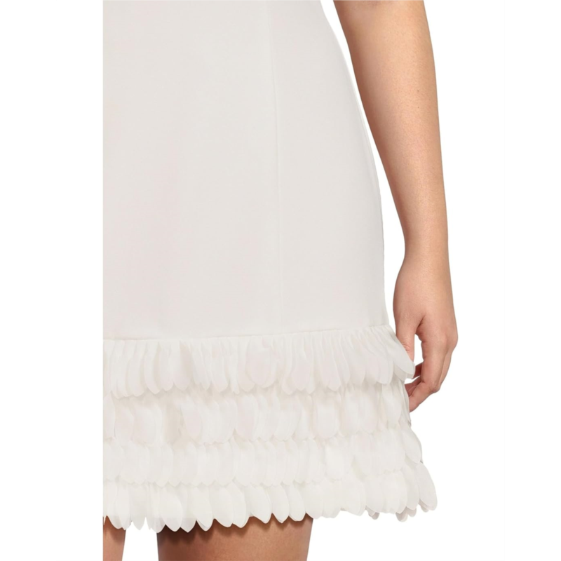 - Feel good and look stunning wearing the Adrianna Papell 3d Petal Crepe Short Dress. This dress features V-neckline, sleeveless style, zippered back closure, and 3 D petal hem detail.