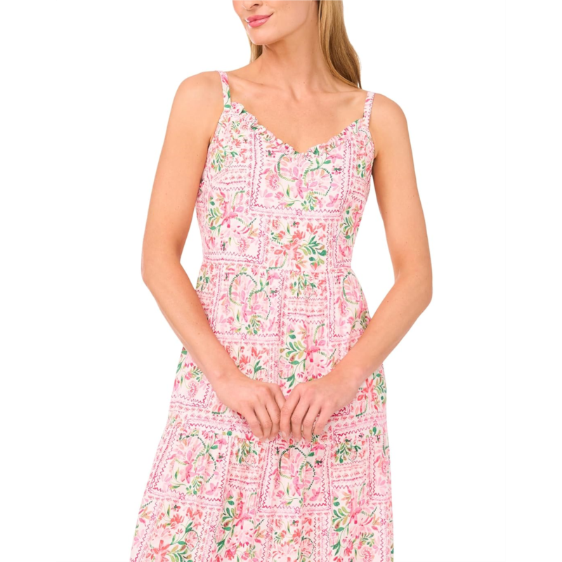 Womens CeCe Floral Spaghetti Strap Tiered Midi Dress