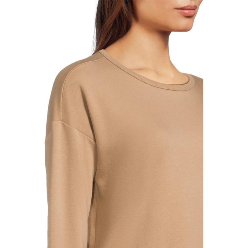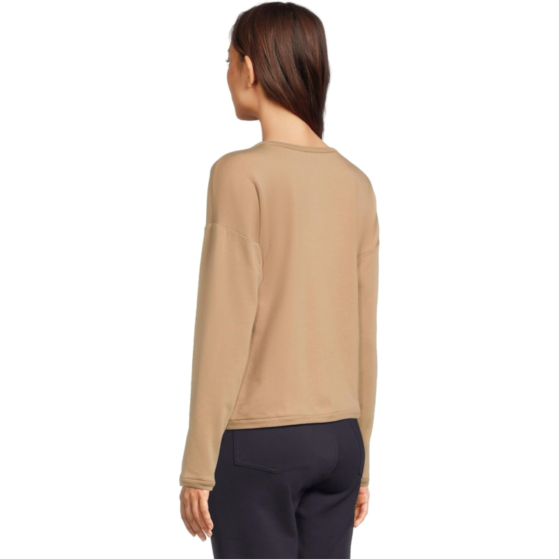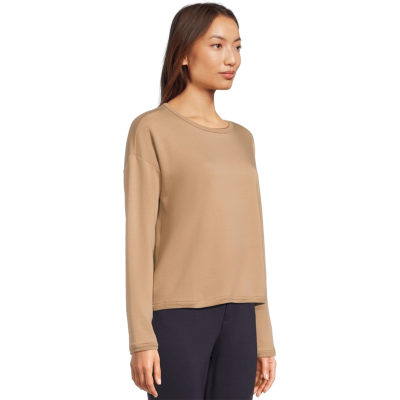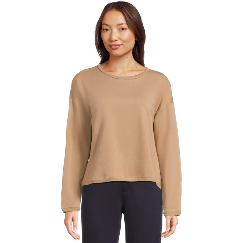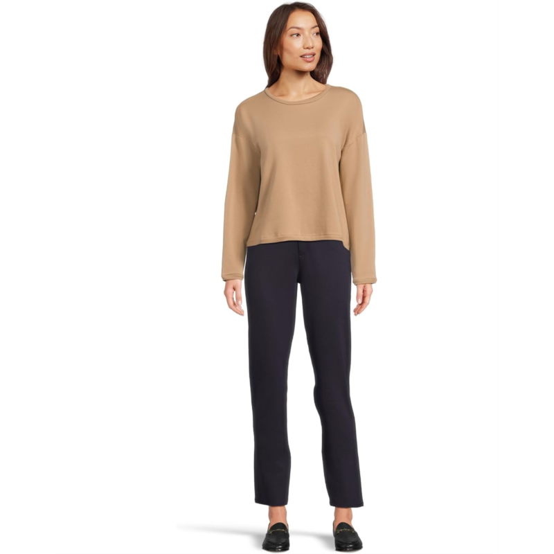 - The EILEEN FISHER Round Neck Cropped Box Top boasts an evolution of best-loved terry, updated with cotton. Smooth and soft with a brushed fleece interior for a cozier feel, the pull-on style top has a round neckline and long sleeves.