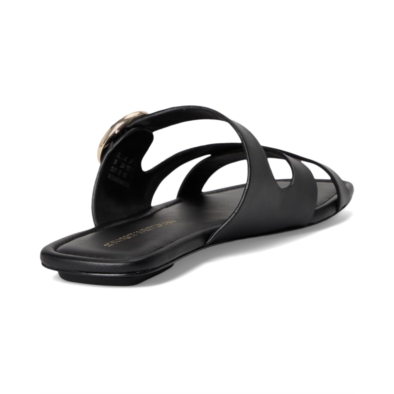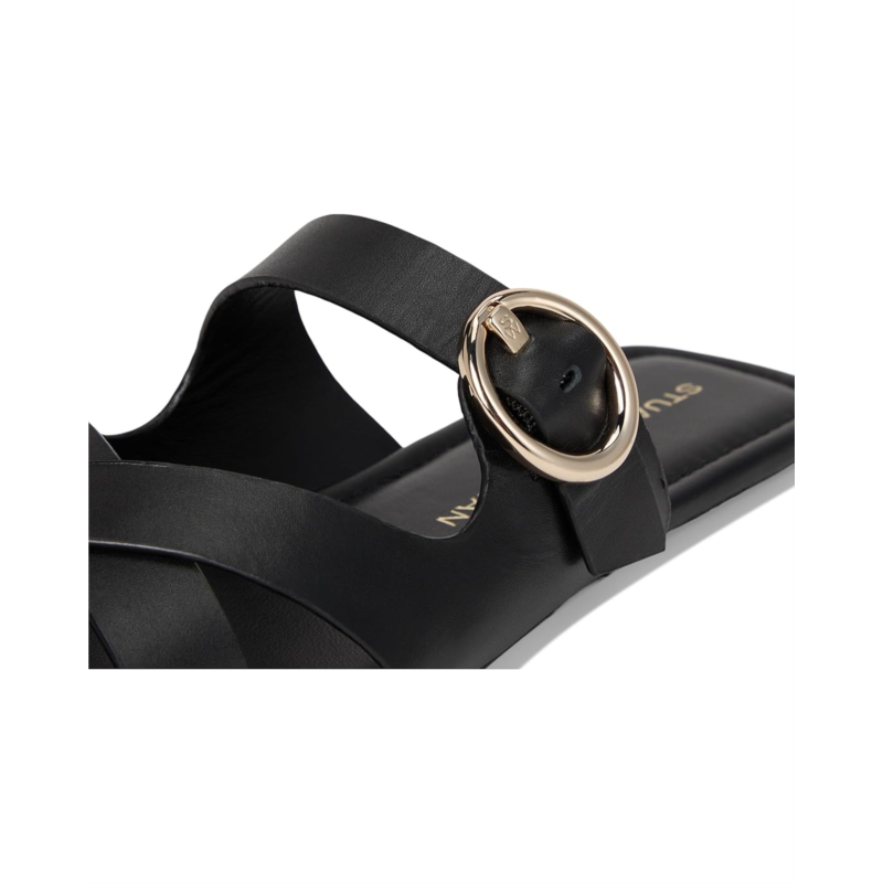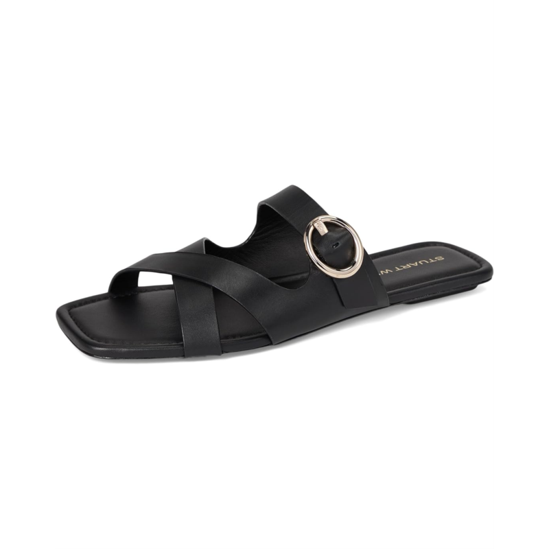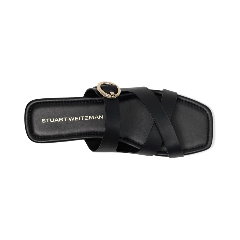 - Walk your way with enhanced comfort and a bit of style wearing Stuart Weitzman Villa Slide. The slip-on style sandals feature a calf leather upper, cow leather lining, and an insole. The strappy silhouette is accentuated with an adjustable buckle closure and an open sqaured toe silhouette.