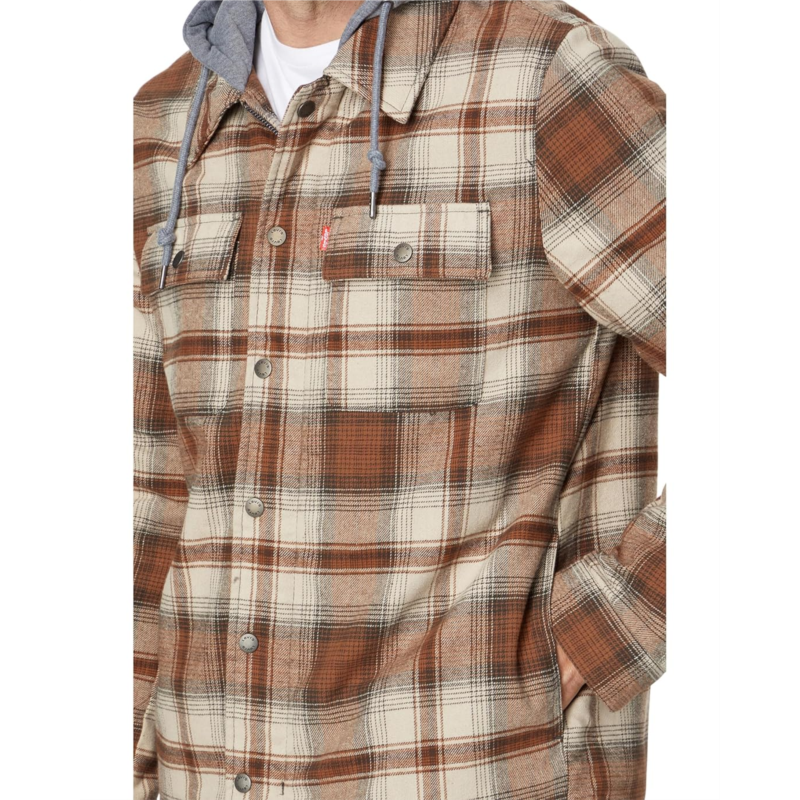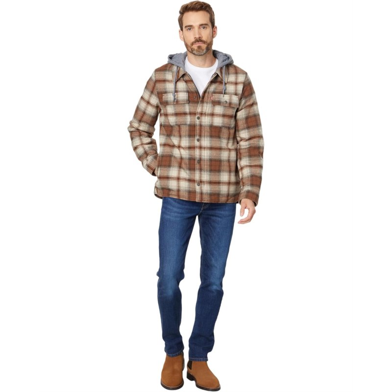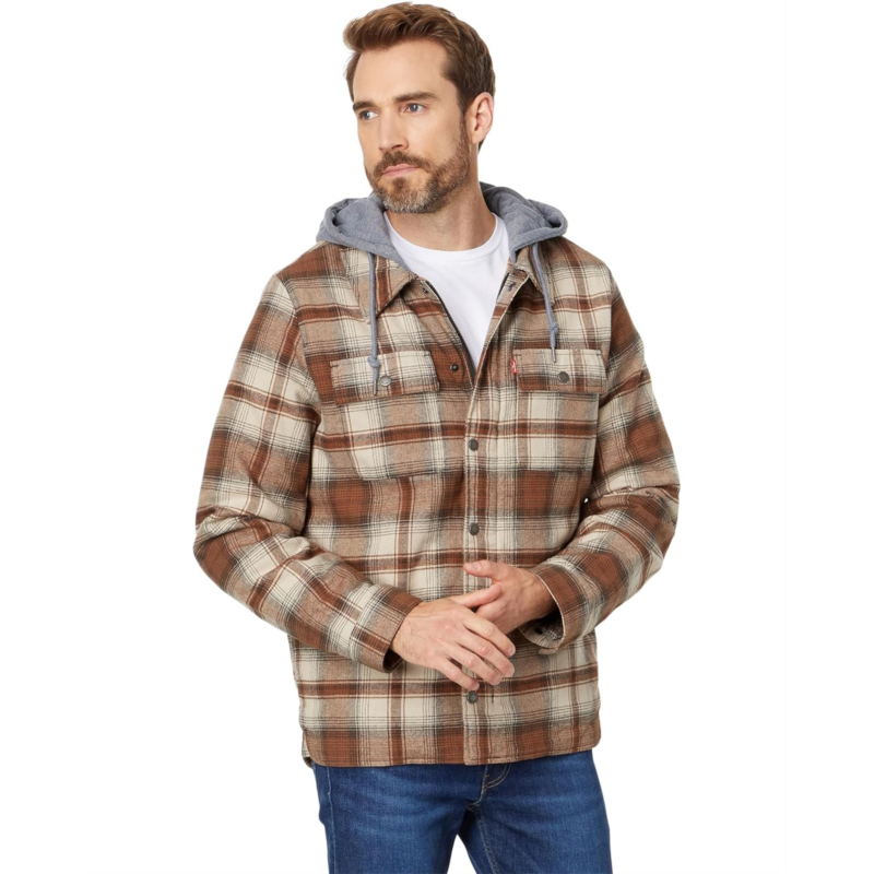 [US] Mens Levis Washed Cotton Shirt Jacket with A Jersey Hood and Sherpa Lining