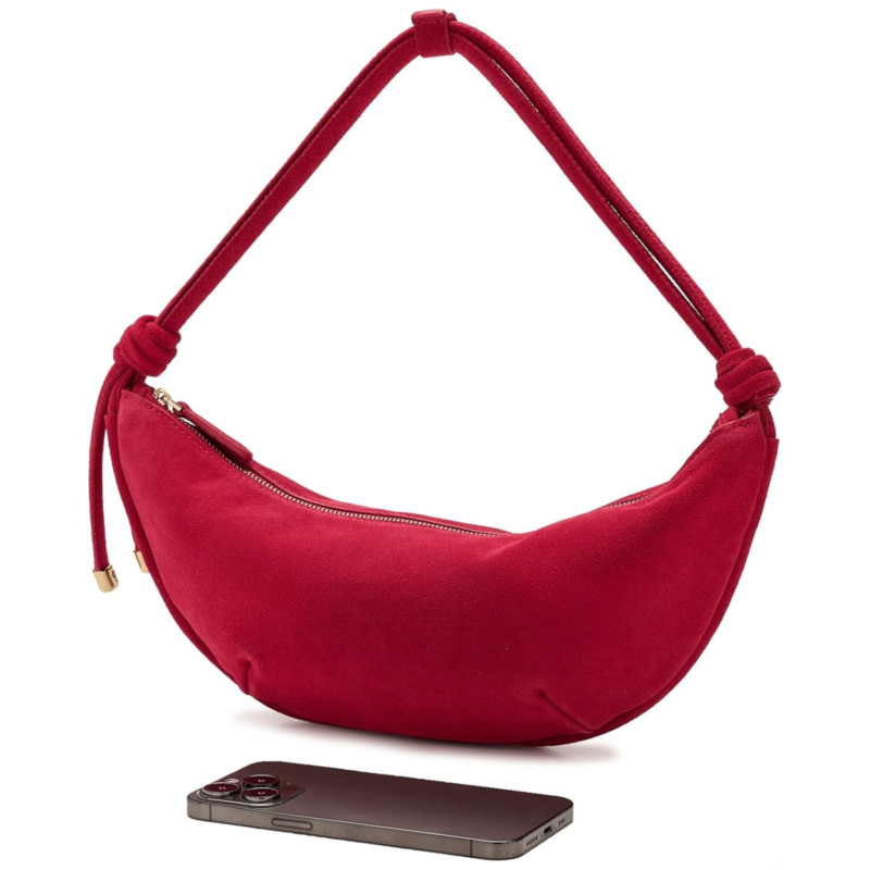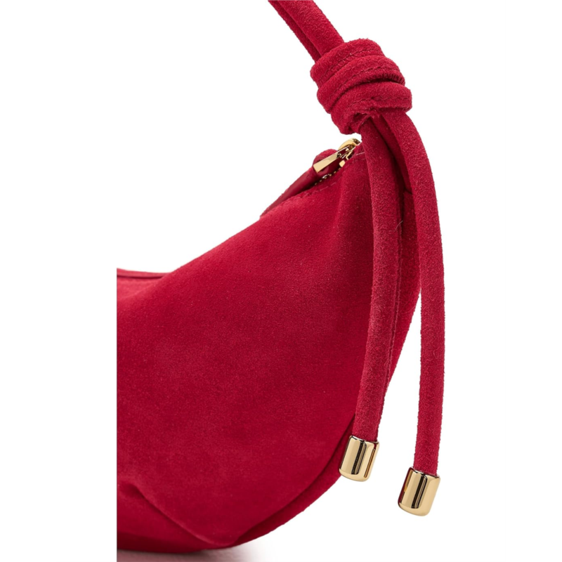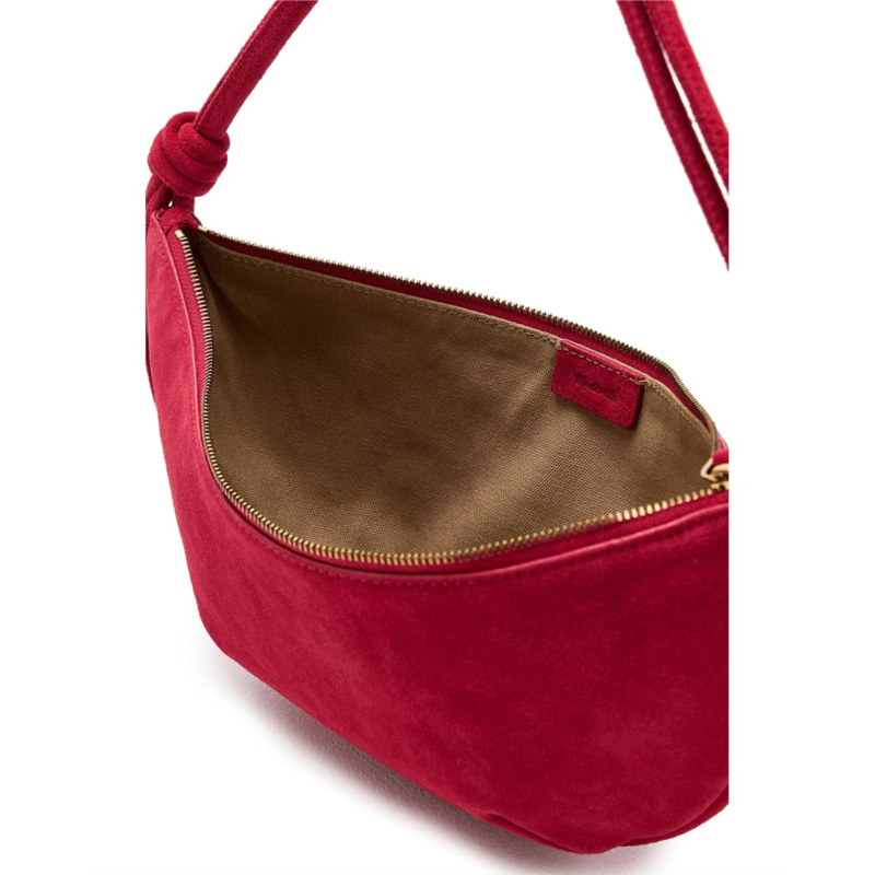 - Designed in a crescent shape, the Madewell Suede Bolo Shoulder Bag features a zippered closure, an interior card slot, and a wrapped handle with bolo tie detail, making it both stylish and functional.