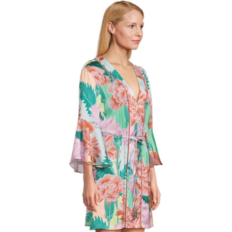 Style and functionality come together in the Maaji Japanese Eden Enjoyable Dress. Perfect for the beach, this floral printed dress features a V-neckline, three-fourth flared sleeves, drawcord at the waist, and an above-the-knee silhouette.
