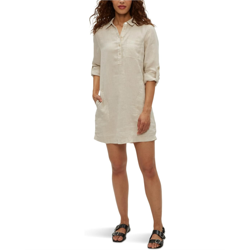 Crafted from lightweight and breathable linen fabric, the Michael Stars Eleanor Utility Dress is designed to match your everyday comfort and style. This shift dress comes with a half-buttoned placket that offers easy wear. Super chic and comfortable, this popover dress is perfect to match your casual and fashionista styles.