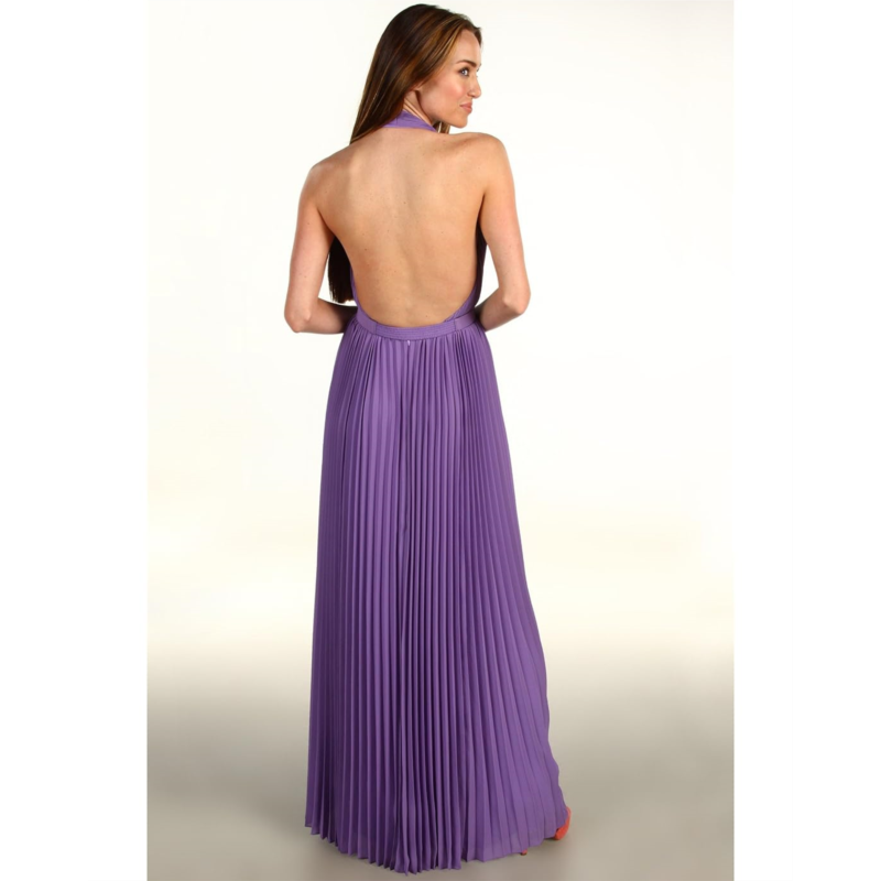 [US] Halston Pleated V-Neck Gown With 1 Self Belt