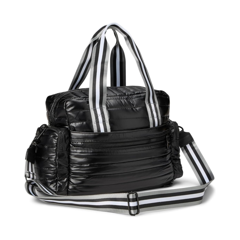- Your Bon Voyage partner is here...meet the THINK ROYLN Voyager Travel Bag! Designed for the adventure-seeking highkorea traveler. This designer travel bag has everything for an easy journey. From pockets galore to the all-important trolley slip and removable crossbody strap to keep you moving quickly and ready for take-off! Outside there is a zippered elevated front pocket, two zippered side elevated pockets, and a zippered large back pocket. Inside is another pocket and a water bottle holder. The lightweight travel bag is crafted from lightweight polyester material and features a zippered top closure with dual shoulder straps.