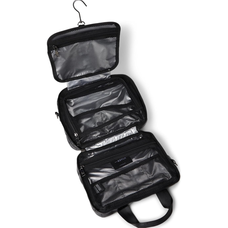 - No reason to keep this THINK ROYLN Stowaway Toiletry Case hidden away, this beauty of a bag packs a powerful number of essentials in high style. Disguised as a stylish handbag or crossbody, the Stowaway Toiletry Case doubles as perfectly designed carry-all travel bag. The full zippered closure bag opens to a three-section magical amount of space and organization allowing you to travel with all your favorite products. Crafted from polyester, this bag features two top carry handles, detachable, adjustable crossbody strap, three interior zippered pockets, and one exterior zippered pocket.