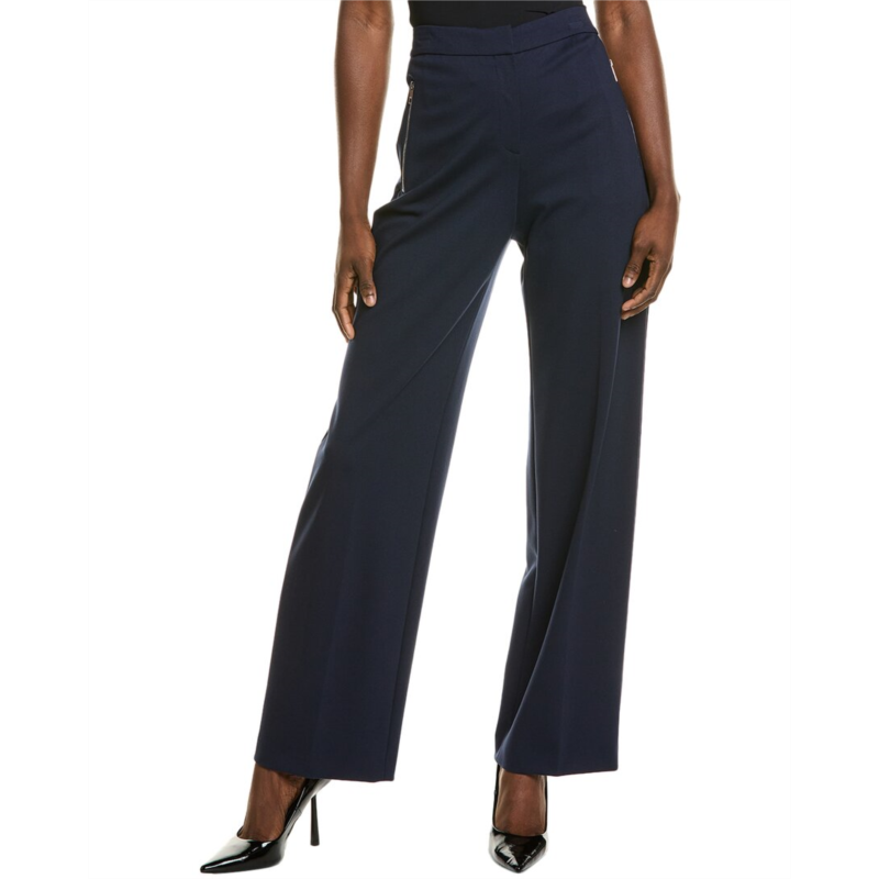 Introducing the BOSS Hugo Boss Tilda Pant, a versatile addition to your wardrobe. These casual pants feature a stylish dark blue color and a sleek design with two zippered front pockets. The inseam is approximately 33 inches with a 12-inch rise, offering a comfortable fit. The pants are made from a blend of 65% viscose, 30% nylon, and 5% elastane, making them soft and stretchy. The zip fly with hook-and-bar closure adds a touch of sophistication. These pants are dry clean only and imported, ensuring high quality and style. Perfect for a chic and effortless look, the BOSS Hugo Boss Tilda Pant is a must-have for every fashion-forward woman.