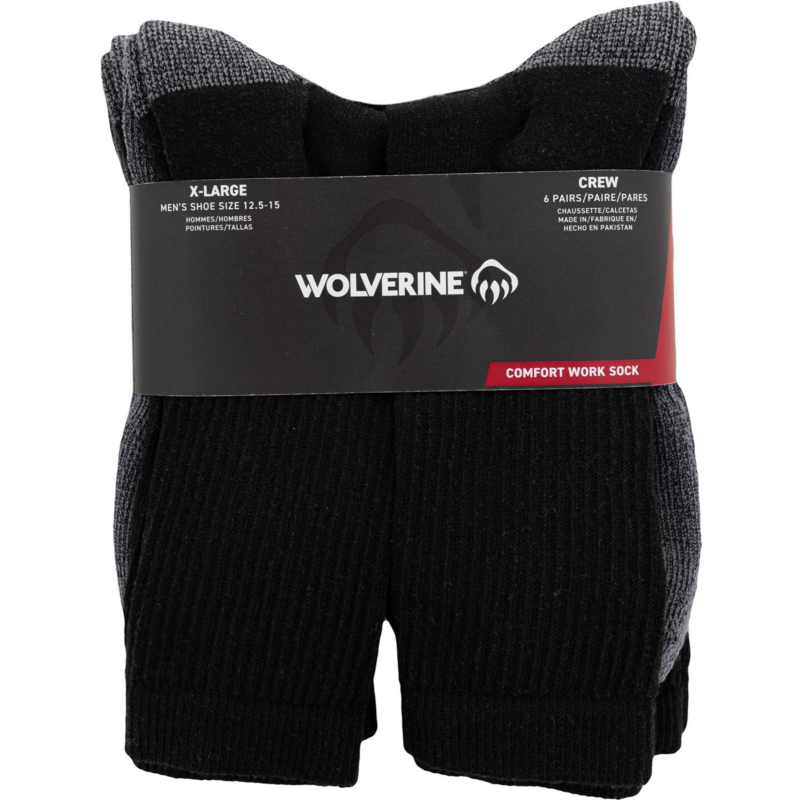 [US] Wolverine Mens Cotton Steel Toe Crew Socks 6-Pack Black