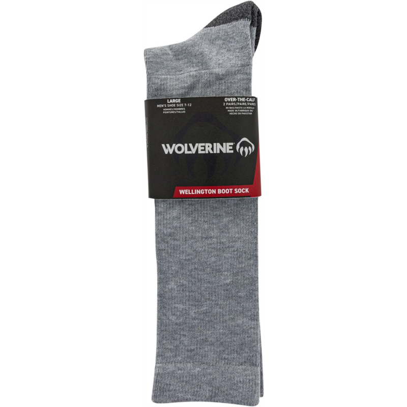 Keep your feet comfortable on long work days with the Wolverine Wellington Boot Knee High Socks 2 Pack. The moisture-wicking material is reinforced on the heels and toes for extra durability. Embedded arch support helps reduce foot strain, while smooth seams reduce chafing. Ribbed tops ensure that your socks stay put under tall boots. Made of 72% cotton, 16% nylon, 10% polyester and 2% spandex for day-long softness