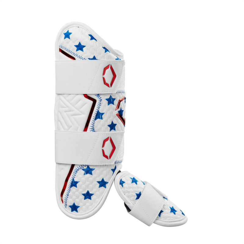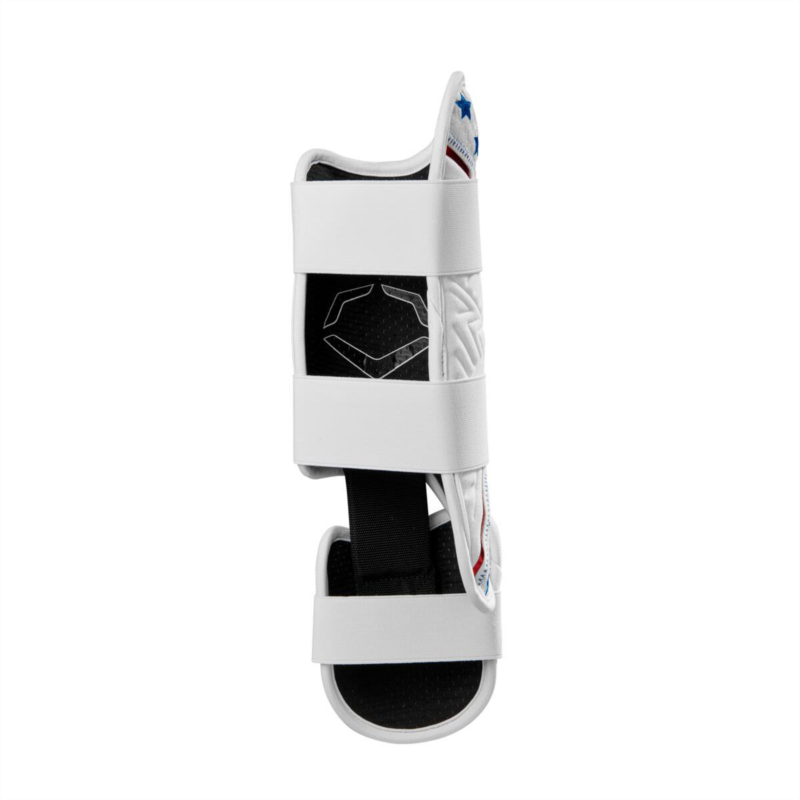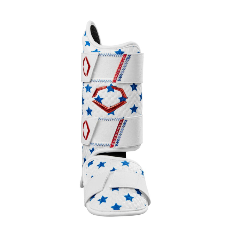 Focus on your swing, not the fear of getting hit, with the EvoShield XSRZ Patriot Right Leg Guard. Designed specifically for right-handed hitters, this guard utilizes Gel-to-Shell Technology to mold perfectly to your leg, creating a custom shield that absorbs impact and protects you from foul balls and stray pitches. The breathable mesh lining ensures comfort throughout the game, while the dispersion technology minimizes the sting from hard hits. Don''t just protect your leg, show your American pride with the stars and stripes design. EvoShields innovative Gel-to-Shell material transforms from flexible gel to a custom-molded shield, absorbing impact and dispersing force for ultimate leg protection