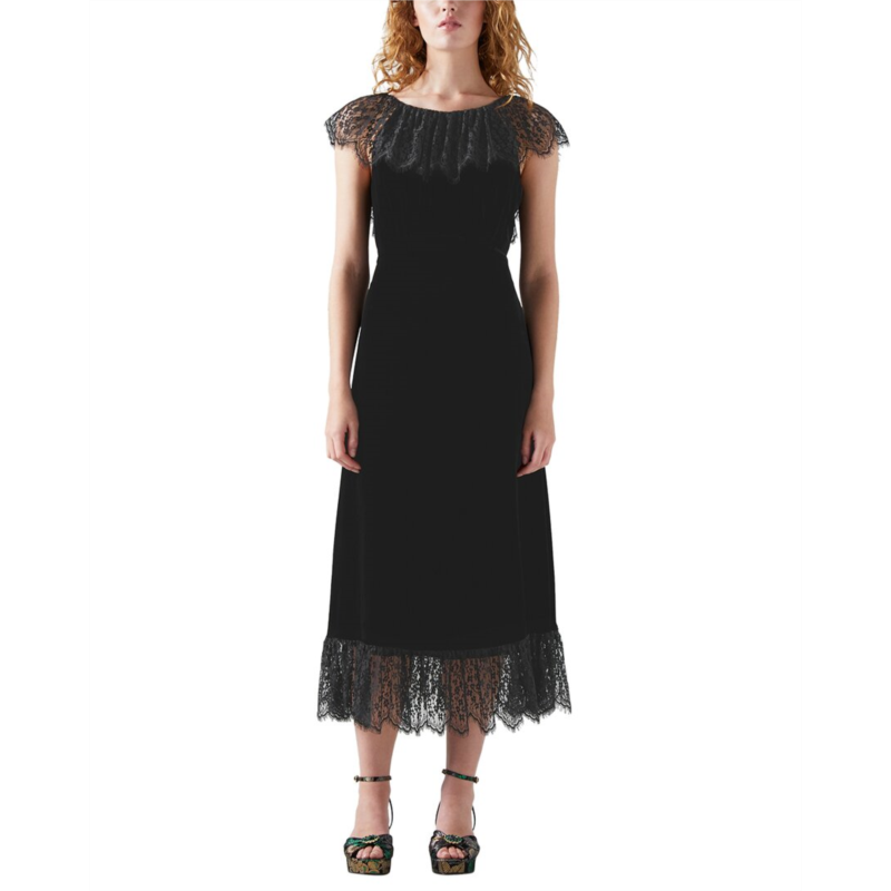 Elevate your evening look with the LK Bennett Anouk Dress. This stunning dress is designed for your most glamorous moments, whether it''s dinners, dancing, or anything in between. Crafted from super-soft black velvet with a touch of silk, Anouk features a round neck and a scoop back trimmed in pleated lace with a scallop edge. The dress also boasts a nipped waist and a softly-flared midi skirt with matching lace detailing. Complete the look with dance-all-night platforms and a chic clutch for a show-stopping ensemble. Please note that size selections are UK, so be sure to reference the size chart for US conversions. This dress is dry clean only, and imported for your convenience.