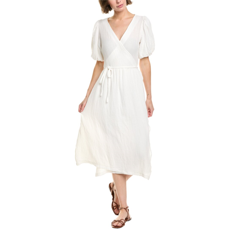 Introducing the ''To My Lovers Midi Dress'' from the brand ''To My Lovers''. This stunning dress comes in a crisp white color, with unique design details including puff sleeves and a fabric waist tie for a flattering silhouette. Made from 100% cotton, this dress is approximately 46 inches from shoulder to hem and features a self-tie front. The model is 5''9'' and is wearing a size small. Hand wash recommended. Imported. Perfect for any occasion, this midi dress will surely turn heads wherever you go.