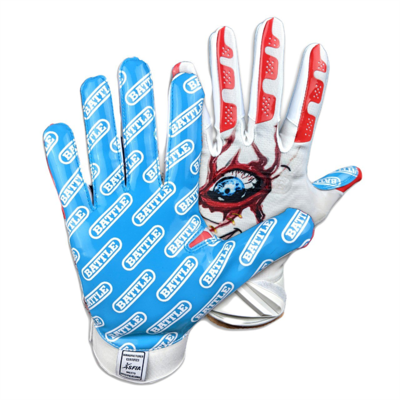 Excel on the field with the Battle Adults'' Lil Evil Football Gloves. The Ultra-Stick palms provide reliable catching performance, and the hook-and-loop closures offer an adjustable fit. Made from PerfectFit material for breathability