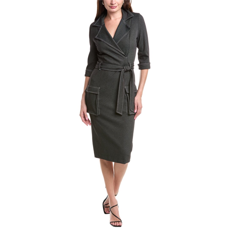 Elevate your wardrobe with the Black Halo Iria Sheath Dress in Denim Daze. This stylish and versatile dress features front patch pockets and a tie belt for a flattering silhouette. Made in LA, Black Halo is known for its modern and polished designs. The Iria Sheath Dress measures approximately 45 inches from shoulder to hem and is designed for a slip-on styling. The shell is crafted from a blend of rayon, nylon, and spandex, while the lining is made of nylon and elastane. Whether you''re dressing up for a special occasion or heading to the office, this dress is sure to make a statement. Complete your look with your favorite accessories and get ready to turn heads. Upgrade your wardrobe with the Black Halo Iria Sheath Dress today.