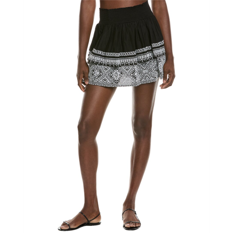 Introducing the Ramy Brook Loretta Mini Skirt, a stunning piece that embodies the brand''s signature style of silk fabrics, lively colors, and sophisticated silhouettes. This black and white multi-embroidered skirt features a smocked waist, tiered ruffle construction, and intricate embroidered design. With a length of approximately 17 inches from waist to hem, this skirt is perfect for any occasion. The model is 5''11 and is wearing a size small. Made from 100% cotton, this skirt is easy to care for with machine washable instructions. Elevate your wardrobe with this imported, slip-on styled skirt that is sure to turn heads wherever you go.