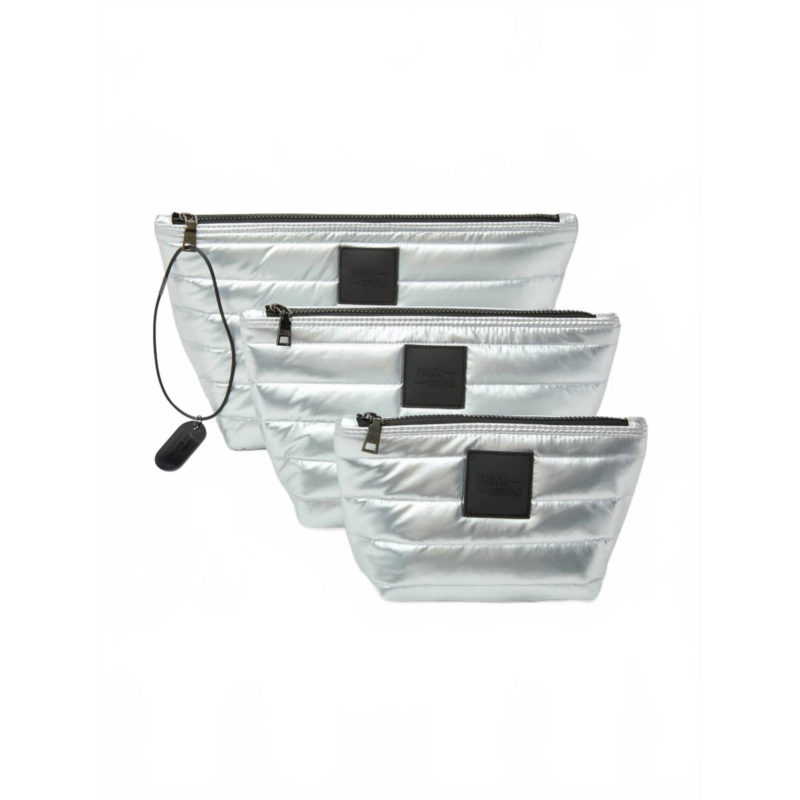 [US] THINK ROYLN womens travel trio organizational pouches in pearl silver