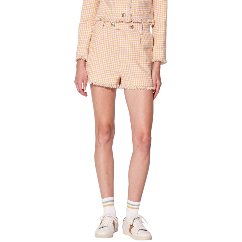 Introducing the Walter Baker Colton Short, a stylish and versatile addition to your wardrobe. This short combines the energetic, eclectic, and edgy vibes of the Walter Baker brand with a flattering design. Crafted in gallery tweed, the Colton Short features a fixed waist, mid-rise, easy fit, belt loops, slant pockets, front pleats, and fringe accents. Fully lined for added comfort, this short has an inseam of approximately 1.75 inches and a rise of 11.5 inches. Featuring a two-button waist tab closure with a fly front, this short is made from 100% polyester and must be dry cleaned only. Imported for your convenience, the Walter Baker Colton Short is a must-have for any fashion-forward woman.