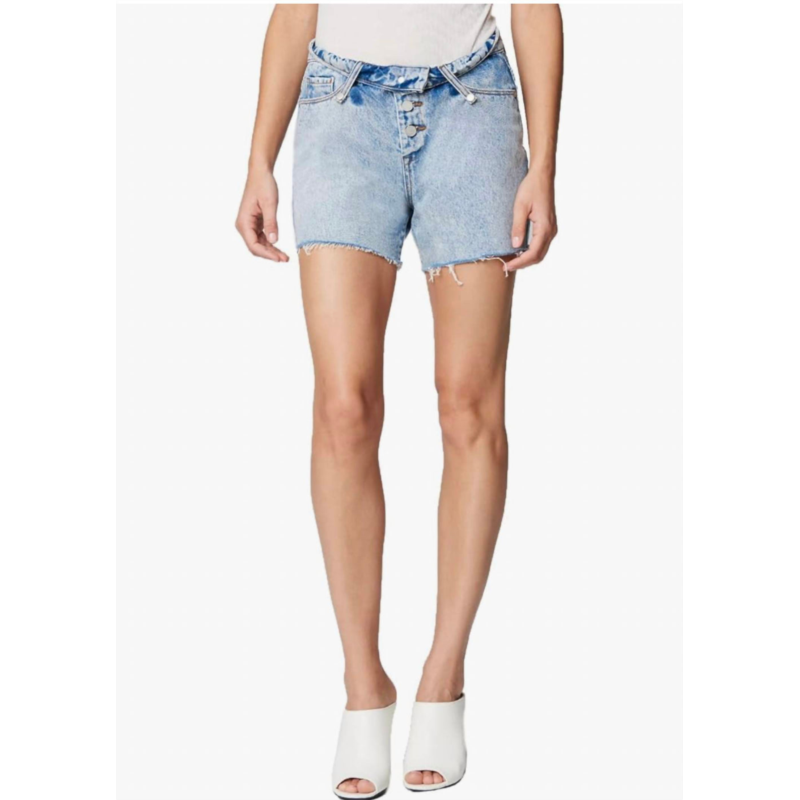 BLANKNYC womens denim mom short with fold over waist detail in lets role