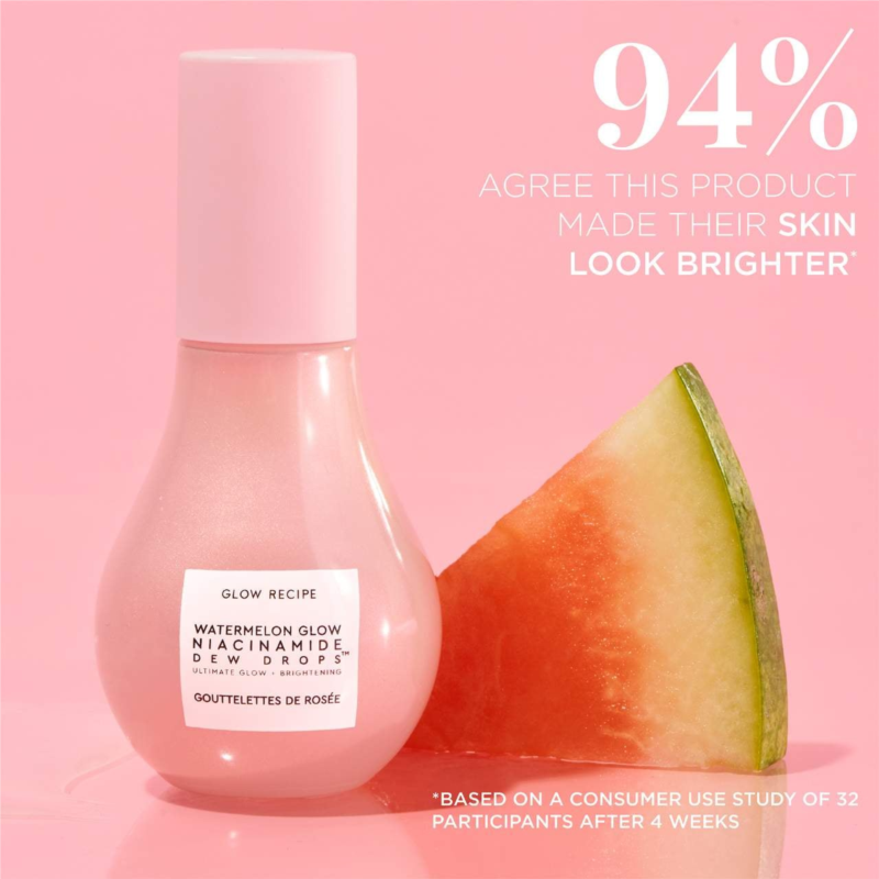 Clinical Results: Watermelon Glow Niacinamide Dew Drops: In a consumer-use study with 32 participants, after 4 weeks: