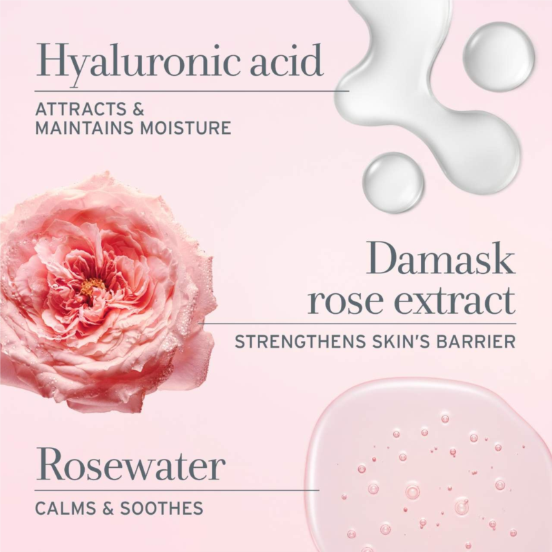 - Damask Rose Extract: Hydrates, smooths, and supports the skin’s natural moisture barrier.