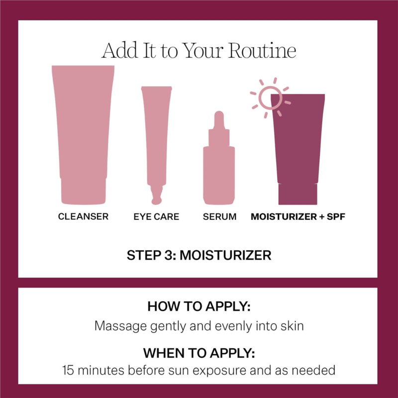 What it is: A daily moisturizer that visibly targets multiple signs of aging and supports skin with broad spectrum SPF 30 protection.
