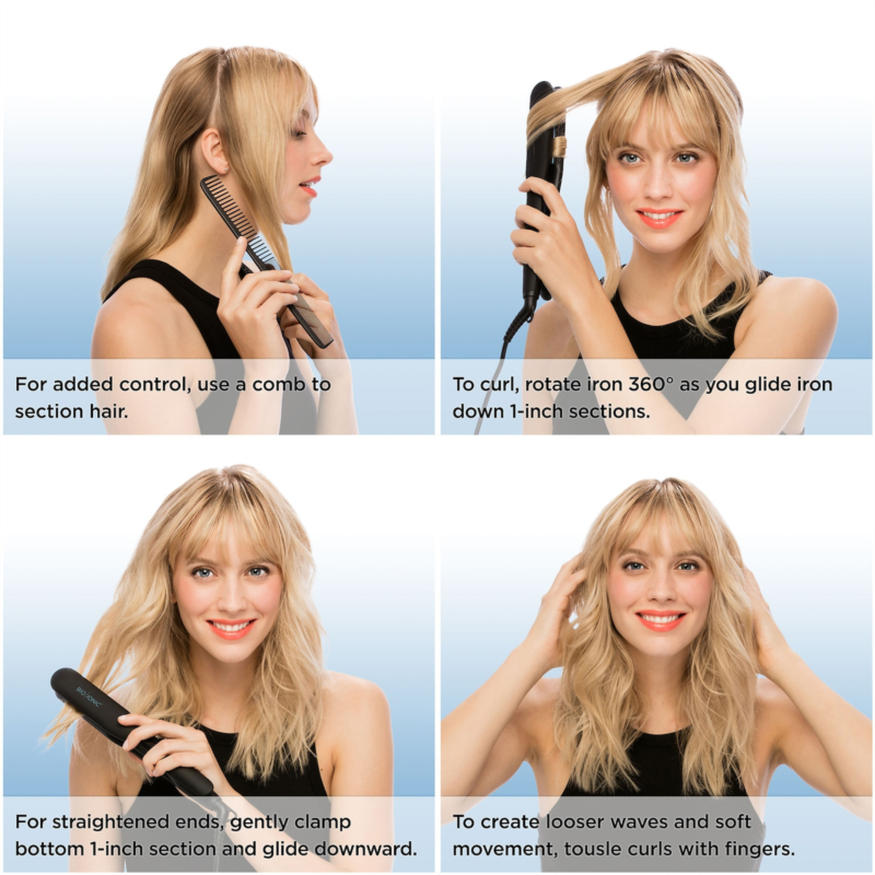 What Else You Need to Know: Powered by a proprietary mineral complex called NanoIonic MX, this revolutionary iron infuses moisture back into your hair while you style to ensure your strands stay smooth, hydrated, and frizz free.