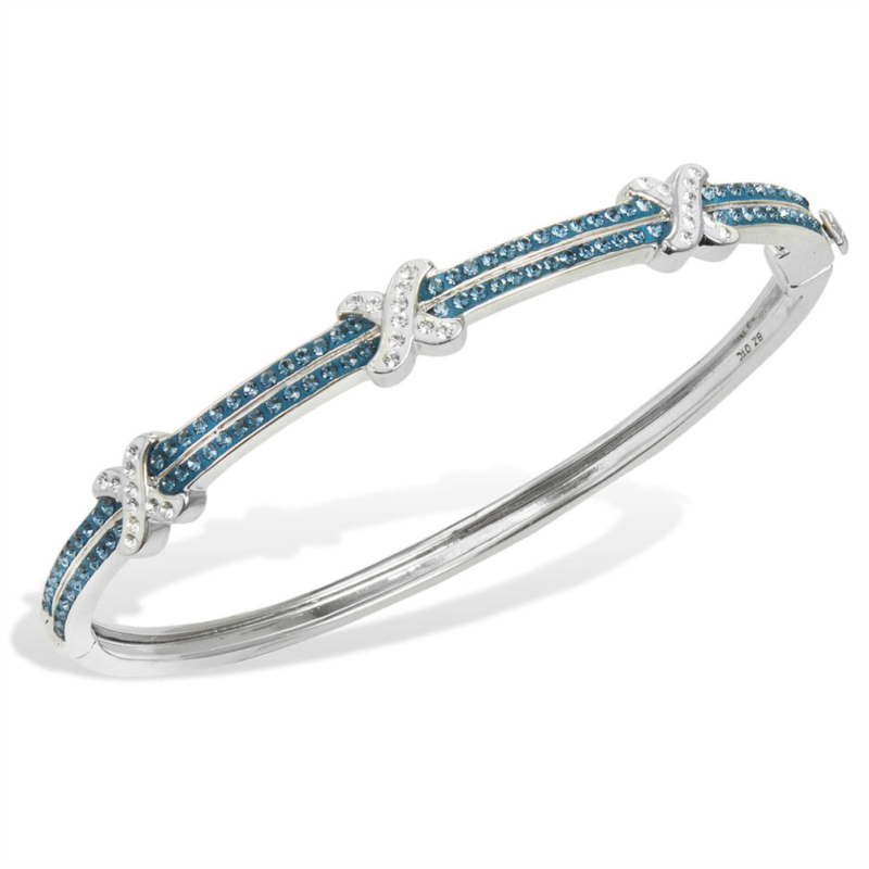 [US] SAVVY CIE JEWELS rhodium plated white and blue crystal x bangle bracelet