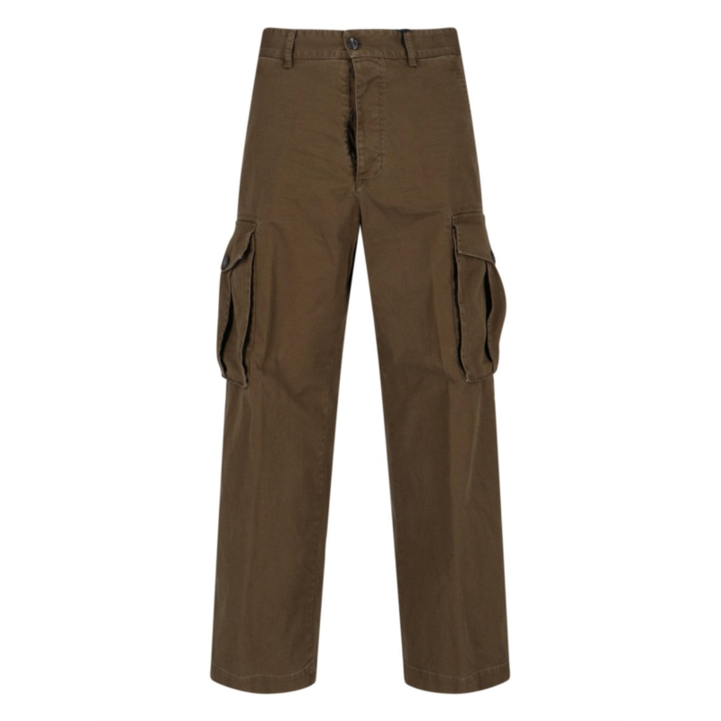 These cargo trousers by Dsquared2 in earthy brown blend style and functionality for the modern man. Designed with a relaxed fit and straight leg silhouette, they include multiple pockets, including two side cargo pockets, ideal for an adventurous lifestyle. Crafted from soft fabric for comfort, the trousers also feature a silver logo tag for added sophistication. The medium waist with belt loops ensures a personalized fit.