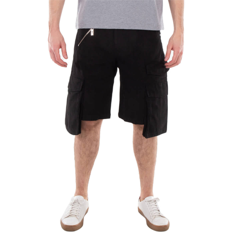 GCDS Men''s Bottoms. Fashion category - Shorts. SKU - A1CM3107TD3-NERO. Color - Black. GCDS Cotton Gabardine Ultracargo Bermuda Shorts. This Bermuda shorts feature a front zipper pocket, side patch cargo pocket, and a front zipper with a stud button closure, all accented with tone-on-tone stitching. 100% Cotton. Made in Portugal.
