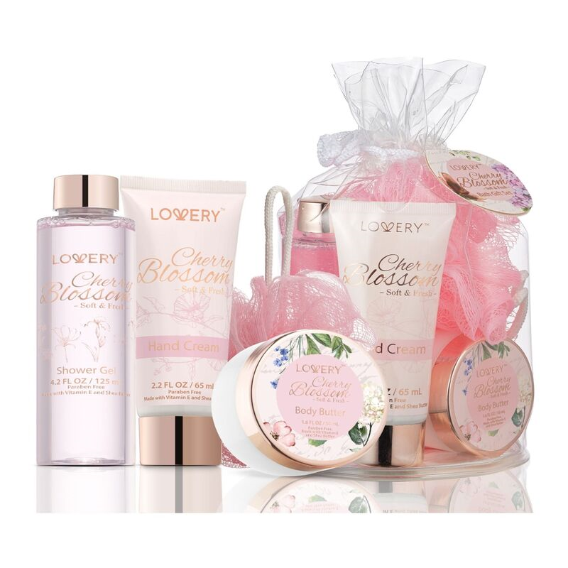 Lovery cherry blossom home spa gift set in clear travel bag