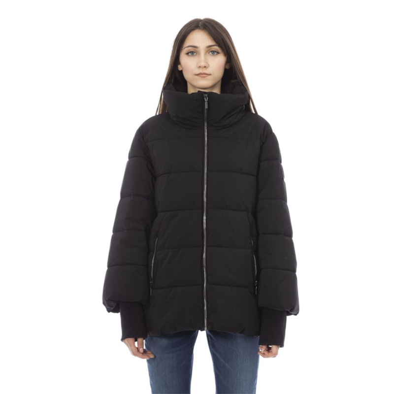 Step into the epitome of chic insulation with Baldinini Trend’s Short Down Jacket. This sleek piece is your go-to for braving the chill in style. The adjustable hood offers a customizable silhouette, while external threaded pockets add a touch of utility with a modern flair. Fastened with a gleaming zip, the metal monogram pulls together a signature look that’s unmistakably Baldinini. Dare to make a statement this season.