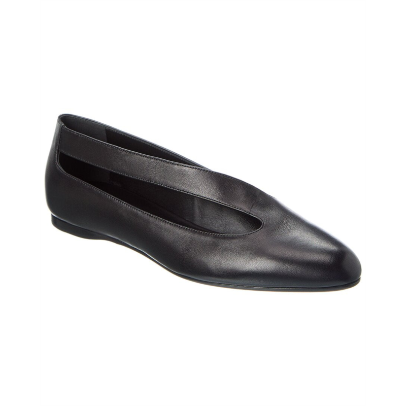 Introducing the KHAITE Diana Leather Ballet Flat, a sophisticated and elegant addition to your shoe collection. Made in Italy, these flats feature a sleek black leather material with a cutout design for added style. The lightly padded leather insole ensures all-day comfort, while the smooth leather sole provides durability. Please note that size selections are European, so refer to the size chart for US conversions. Rest assured, our products are 100% genuine and sourced from trusted independent suppliers. Elevate your look with the KHAITE Diana Leather Ballet Flat today.