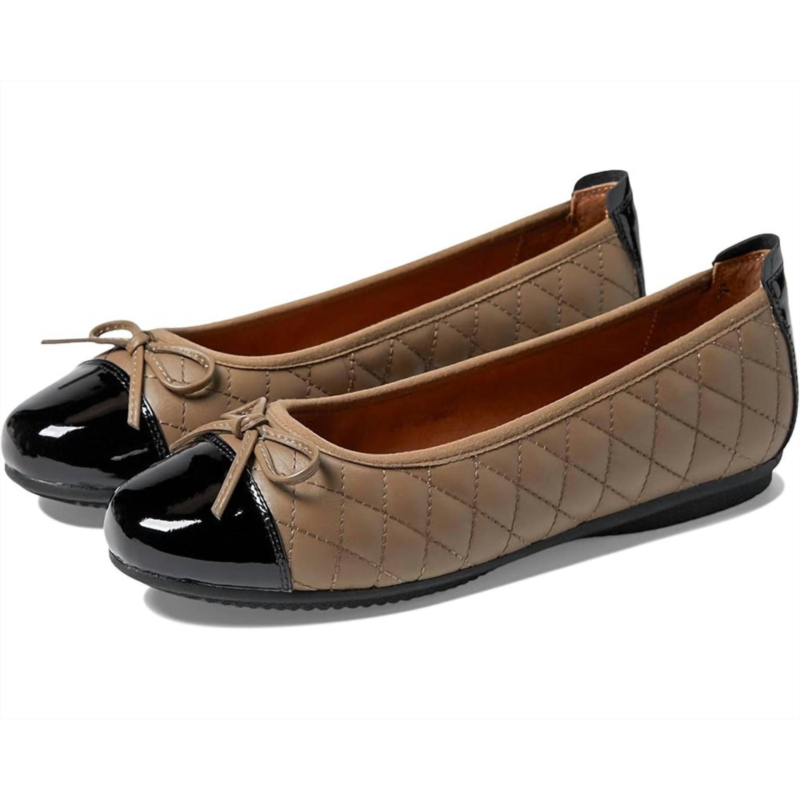 A preppy yet feminine take on the classic loafer.Step into elegance with the Women''s Pippa 76 Flat Shoes by Josef Seibel, crafted with a luxurious leather upper in a chic Taupe/Kombi Calf/Patent finish. These slip-on ballet flats boast a stylish bow detail, padded stitched accents, and a durable synthetic outsole, all combined in a round-toe design with a toe cap. The leather insole and lining ensure comfort, while the brand detailing on the sole adds a subtle touch of class. Perfect for pairing with both casual and formal attire, these imported shoes are an ideal choice for any wardrobe.